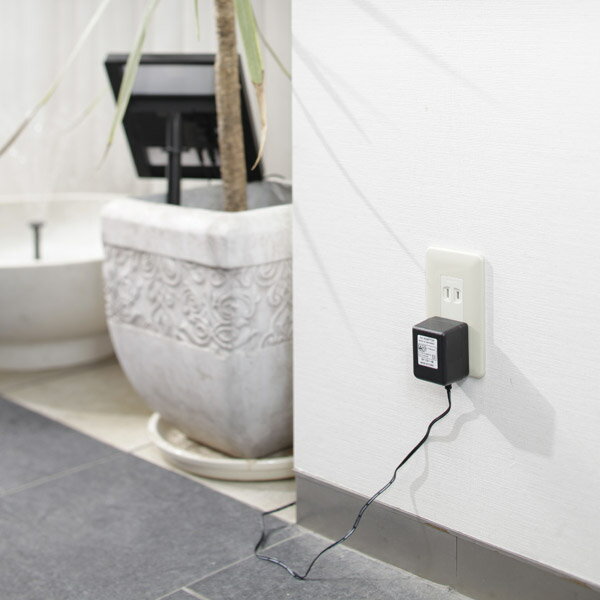 コンセントに接続することで、太陽が当たらない日でも動作させることが可能です。