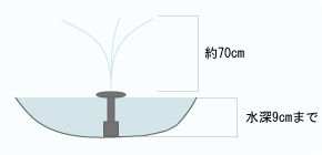 噴水ノズル使用時、晴天の場合、高さ70cm程度まで噴水します。