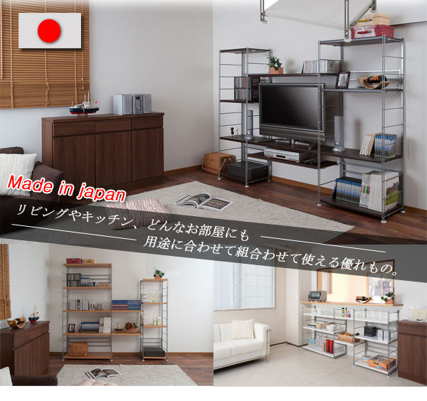 ■商品について/国産の上品質でシンプルなラック更に強度は抜群!棚板を繋いでテレビ台にもなる頑丈なスチールラックは棚板の構造が他とは違うんです。