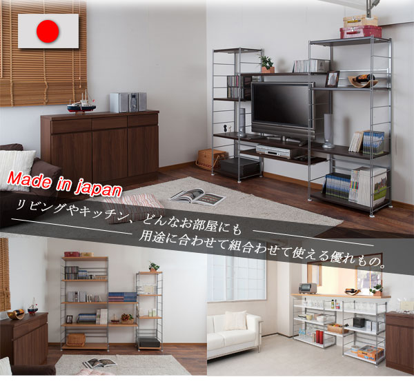 ■商品について/国産の上品質でシンプルなラック更に強度は抜群!棚板を繋いでテレビ台にもなる頑丈なスチールラックは棚板の構造が他とは違うんです。