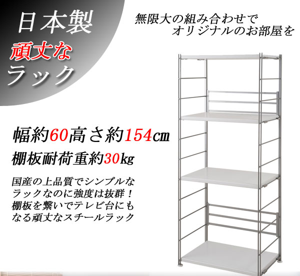 【19日10時から!条件達成でP3倍!】 頑丈 日本製 スチールラック 幅60 高さ154cm オープンラック オープンシェルフ メタルラック オープン棚 システムラック 頑丈棚 おしゃれ スチール棚 収納 奥行40 スチールシェルフ メタルシェルフ アイアン