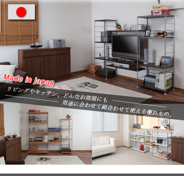 ■商品について/国産の上品質でシンプルなラック更に強度は抜群!棚板を繋いでテレビ台にもなる頑丈なスチールラックは棚板の構造が他とは違うんです。