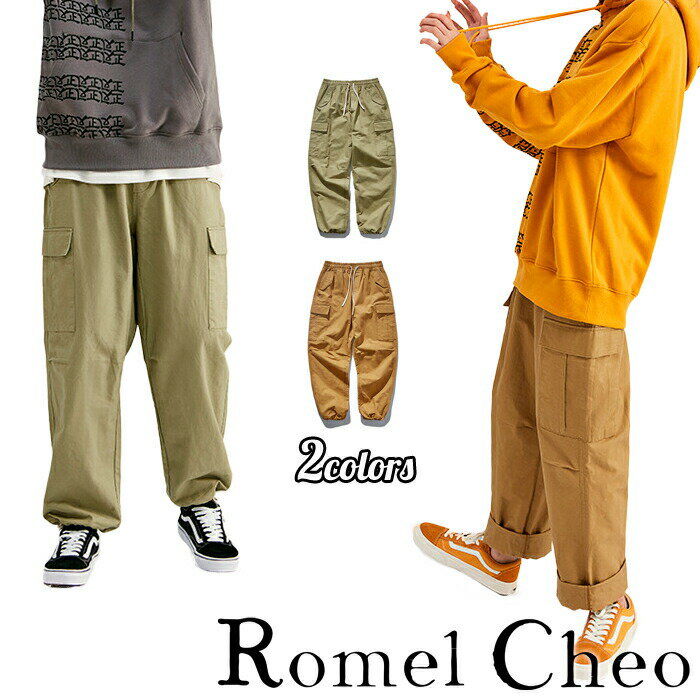 【お支払確認後20日以内発送】 RomelCheo マルチポケット ワイドパンツ カーゴパンツ ワークパンツ イージーパンツ メンズ レディース ユニセックス 綿100% ウエストゴム ゆったり ストリート 原宿系 カジュアル ファッション ロメルチェオ