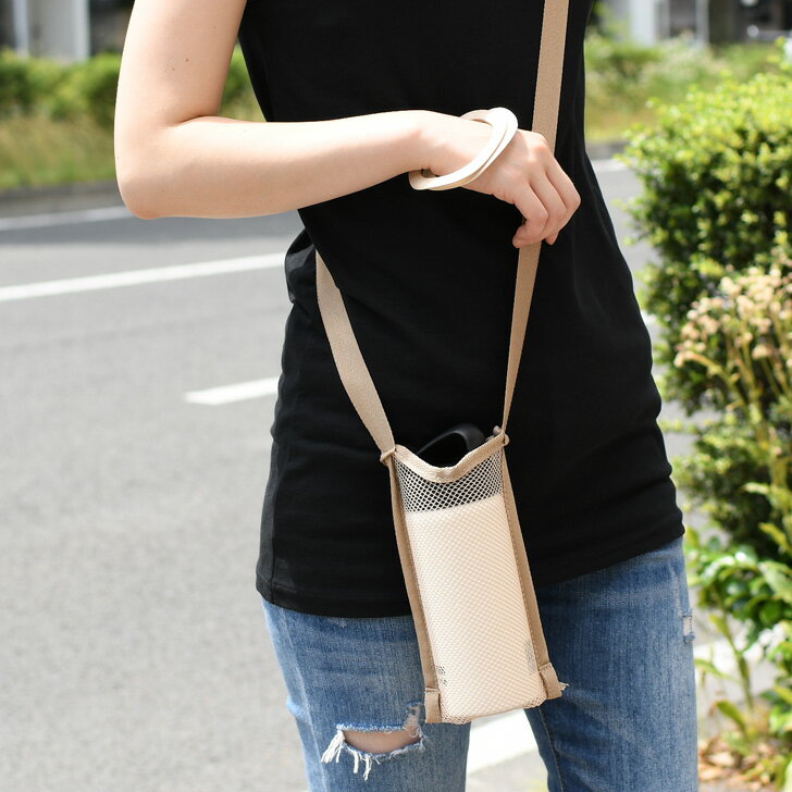 ●大人っぽく落ち着いたメッシュデザインのボトルホルダー とても軽く、持ち運びに便利なショルダータイプ。